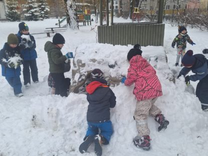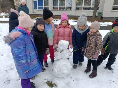 Do naszego przedszkola zawitała zima… Mamy nadzieję, że jeszcze nas odwiedzi 😄. Niecierpliwie czekamy na wspólne budowanie igloo, robienie aniołków na śniegu, rzucanie śnieżkami, zjeżdżanie z górki na sankach i wszystkie inne zimowe zabawy.Tymczasem jeże śpią już w domku, wiewiórka biega po ogrodzie, szukając swoich zapasów, a ptaki korzystają z karmników, które dla nich przygotowaliśmy. PS. Bałwan na czas roztopów wyjechał na południe. Obiecał jeszcze nas odwiedzić.