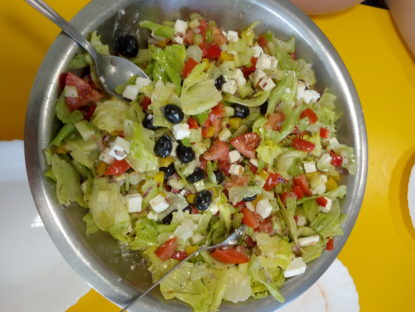 8.10.21 grupa Świetlików zaraz po śniadaniu z wielkim zapałem zabrała się do pracy, przygotowując sałatkę grecką składającą się przede wszystkim z warzyw. Nie mogło zabraknąć kolorowej papryki, świeżych ogórków, cebuli, pomidorów, oliwek i sałaty, którą wprawnie „strzępiliśmy” palcami, na małe kawałeczki. Oczywiście nie zapomnieliśmy o higienie, fartuszkach ochronnych i chusteczkach na głowę. Najpierw poznaliśmy recepturę, rozpoznawaliśmy i nazywaliśmy wszystkie składniki oraz przygotowaliśmy specjalny sos z użyciem oliwy z oliwek, odrobiny […]