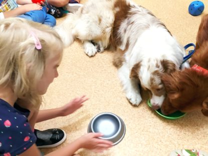 We wtorek 14 września odbyły się terapeutyczne zajęcia z pieskiem, a raczej z pieskami. Pani Kamila wraz Arweną i Coffie znów odwiedziła nasze przedszkole. Mogliśmy pogłaskać pieski, nakarmić je, oraz rozwiązać, zadania matematyczne. Graliśmy także w psie Memory. Czekamy już na nowe wyzwania.
