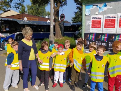 W drugim tygodniu września poznawaliśmy zasady bezpieczeństwa na drodze. W czasie naszych wspólnych zajęć dowiedzieliśmy się jak bezpiecznie poruszać się po chodnikach i przejściach dla pieszych. Kiedy byliśmy już dobrze przygotowani wypróbowaliśmy swoje umiejętności uczestników ruchu drogowego na prawdziwym skrzyżowaniu.