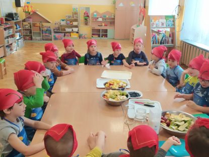 Sezon na owoce z polskich ogrodów i sadów w rozkwicie!!! Każdy przedszkolak już wie, jak ważne są dla nas owoce – nie tylko dlatego, że apetycznie wyglądają, wybornie smakują, ale przede wszystkim – zawierają mnóstwo witamin, które chronią i wzmacniają nasz organizm zwłaszcza w okresie jesieni i zimie. Dlatego też postanowiliśmy zrobić smaczną, kolorową, urozmaiconą i zdrową sałatkę owocową. .Przygotowaliśmy przybory kuchenne, umyliśmy owoce, a także nasze ręce, założyliśmy […]