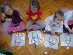 W zimowe i śnieżne dni, kiedy nie możemy wyjść do przedszkolnego ogrodu, a jedynie popatrzeć na niego przez okno, Dzieci z grupy Sowy nie próżnują. Ćwiczymy umiejętności matematyczne i konstrukcyjne oraz rozwijamy naszą wyobraźnię. Ponadto uczymy się pracy zespołowej i koleżeństwa. W tak miłej atmosferze mija nam ten mroźny czas!