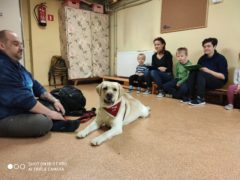 Odkrywców po raz kolejny odwiedził Pan Andrzej tym razem z dwuletnim labradorem o imieniu Abu. Abu został wygłaskany, uczesany i nakarmiony przy wielkiej uciesze dzieci. Przedszkolaki ochoczo chowały mu smakołyki, a on bezbłędnie je odnajdywał.
