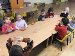 W grudniu grupa Krasnoludki w ramach realizacji tematu „Dbamy o zdrowie” zrobiła zdrowe soki owocowe i warzywne. Sok z marchewki, jabłka i mandarynki wyciskany z wyciskarki wolnoobrotowej smakował dzieciom najbardziej 🙂
